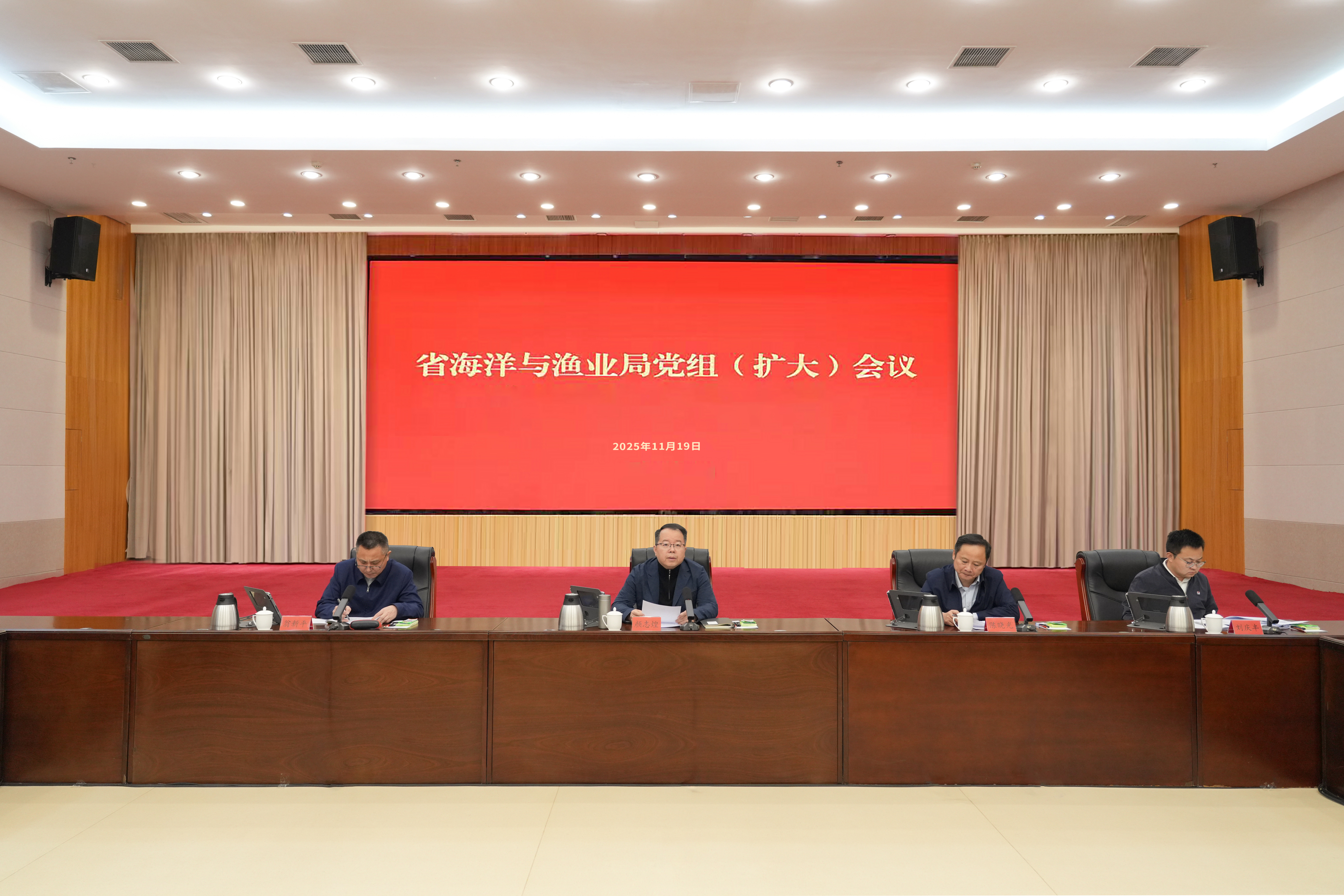 11月19日,福建省海洋与渔业局召开党组扩大会议,传达学习11月18日赵龙省长调研海洋渔业工作时的讲话要求,研究部署贯彻落实措施。局党组书记、局长颜志煌主持会议并讲话。